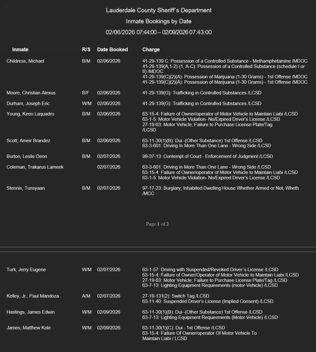 Lauderdale County Arrest Report 2-9-26