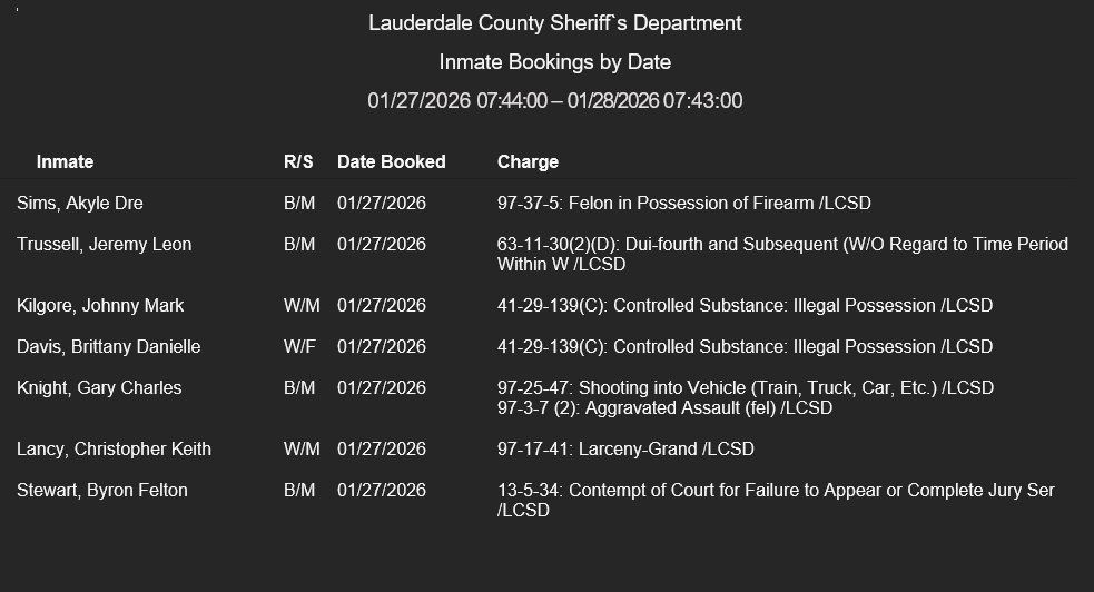 Lauderdale County Arrest Report 1-27-26