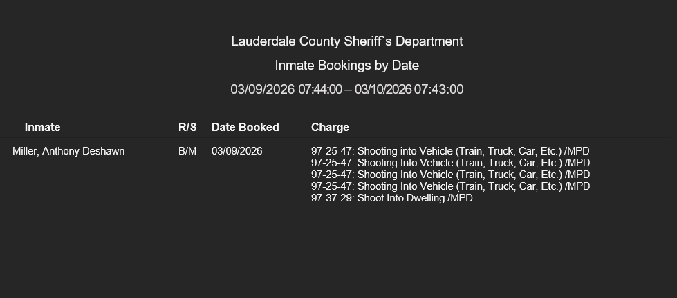 Lauderdale County Arrest Report 3-9-26