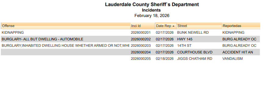 Lauderdale County Arrest Report 2-19-26