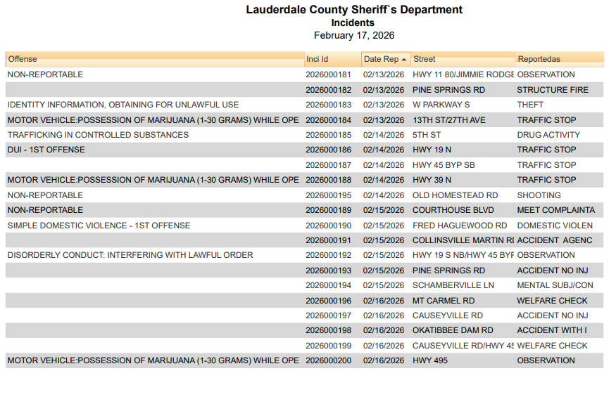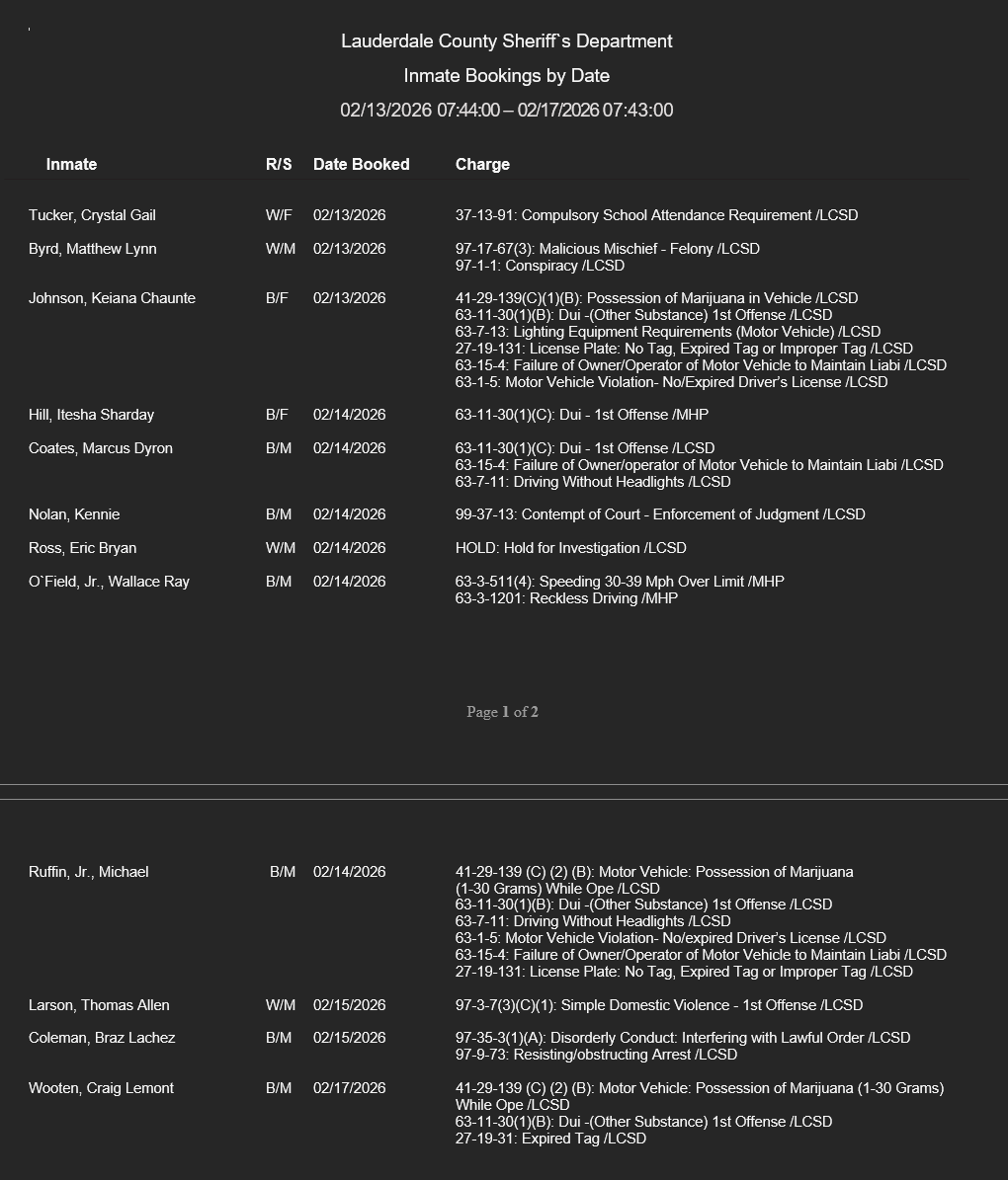 Lauderdale County Arrest Report 2-17-26