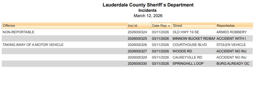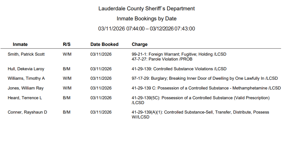 Lauderdale County Arrest Report 3-12-26