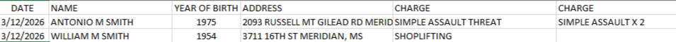 Meridian Police Department was requested to respond to 83 calls for service from March 12, 2026 at 6:00 AM to March 13, 2026 at 6:00 AM.