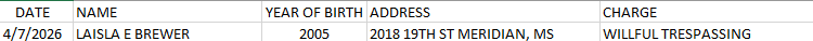At 4:17 PM on April 6, 2026, Meridian Police responded to a residential burglary in the 500 block of Front Street Extension. Entry was gained through a door.