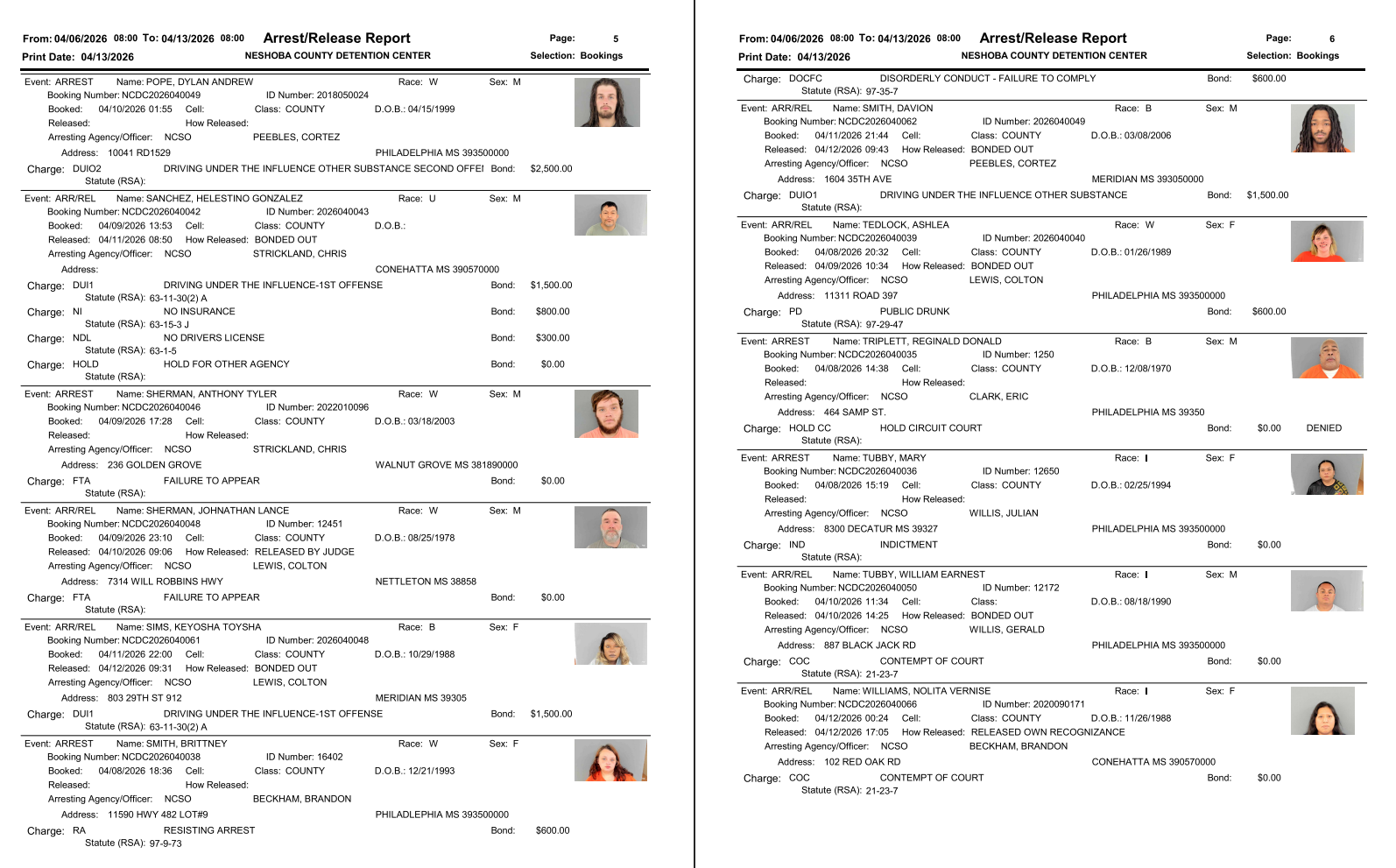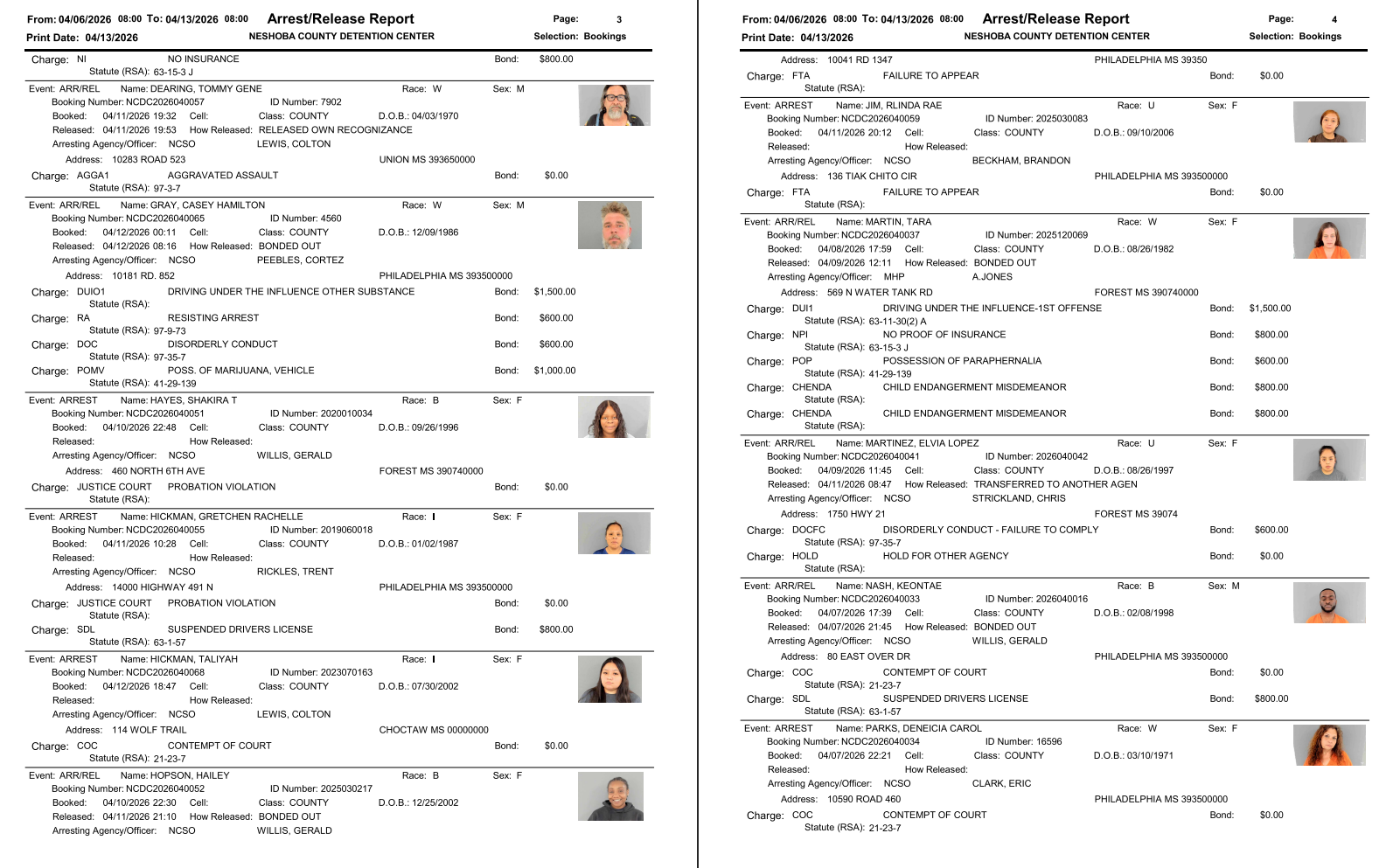 Neshoba County Arrest Report 4-13-26