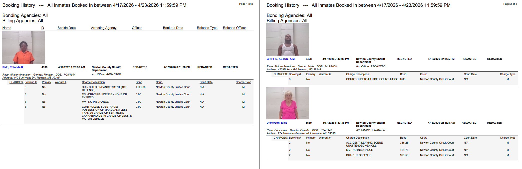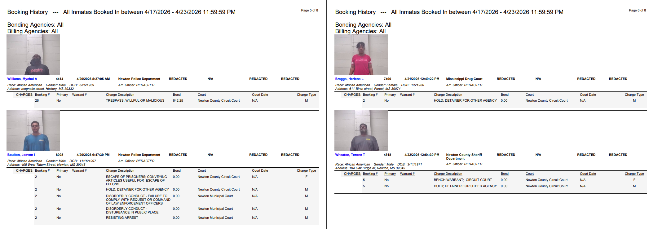 Newton County Arrest Report 4-17-26