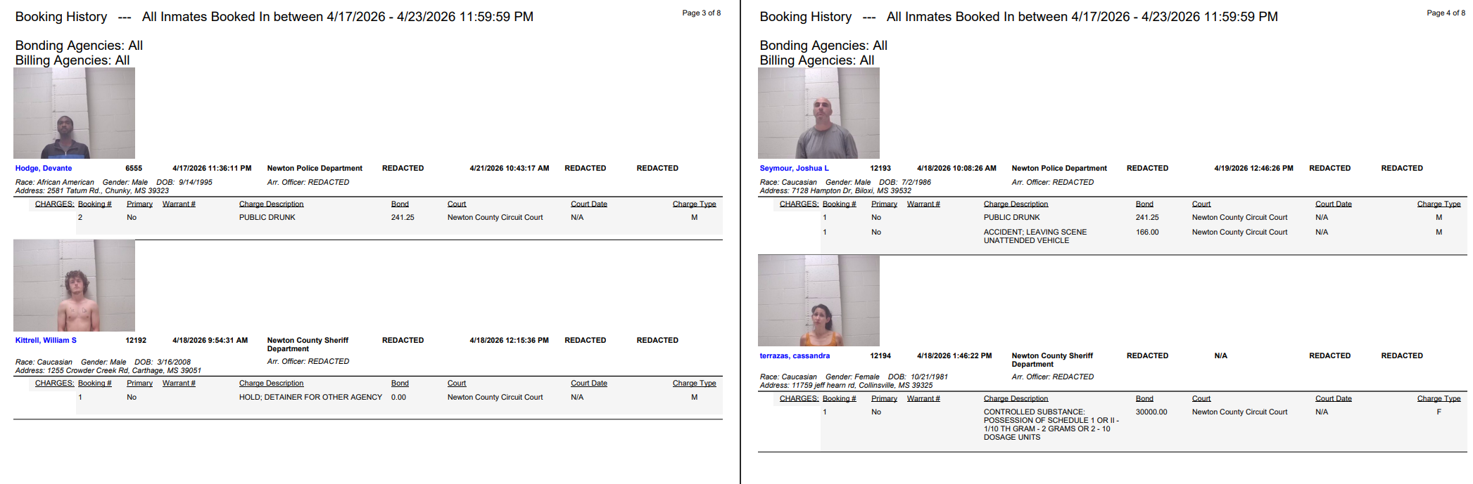 Newton County Arrest Report 4-24-26
