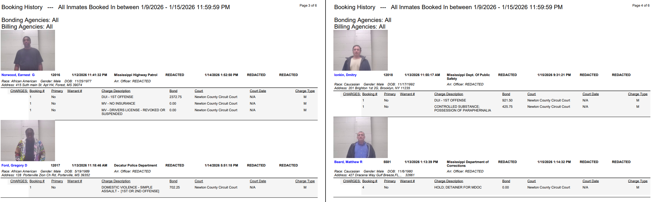 Newton County Arrest Report 1-5-26