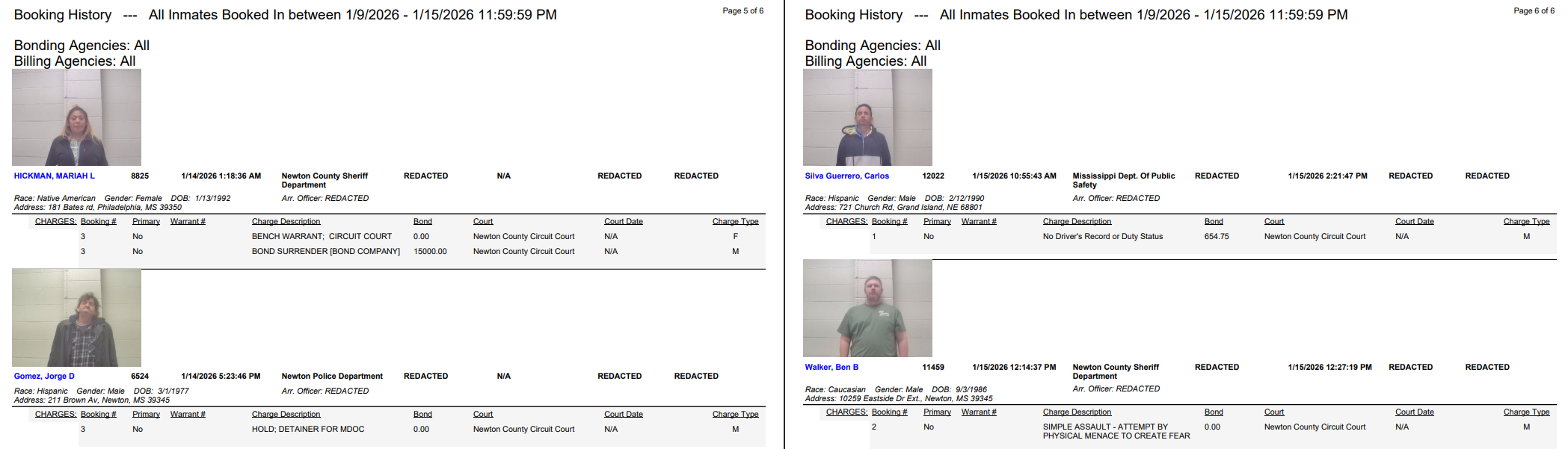 Newton County Arrest Report 1-16-26