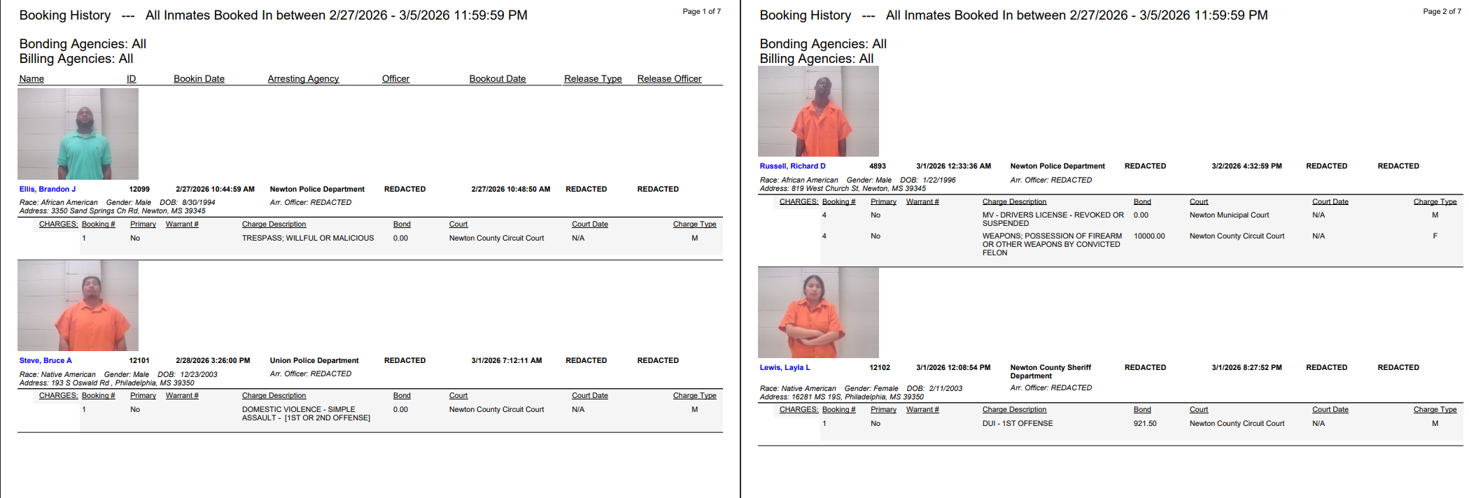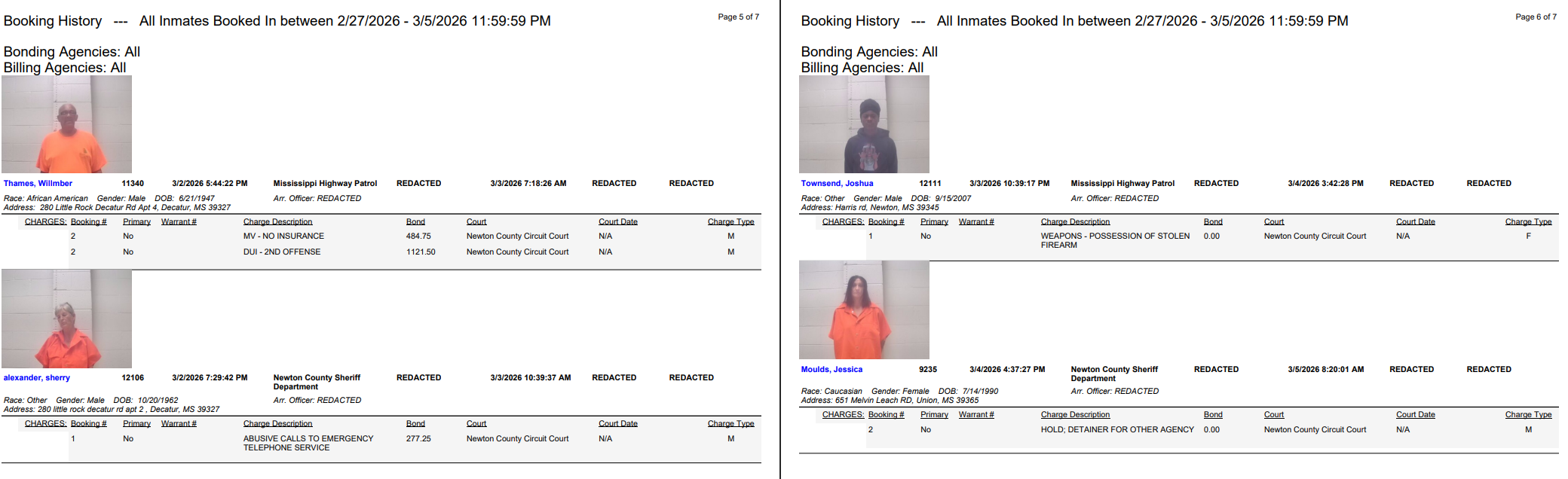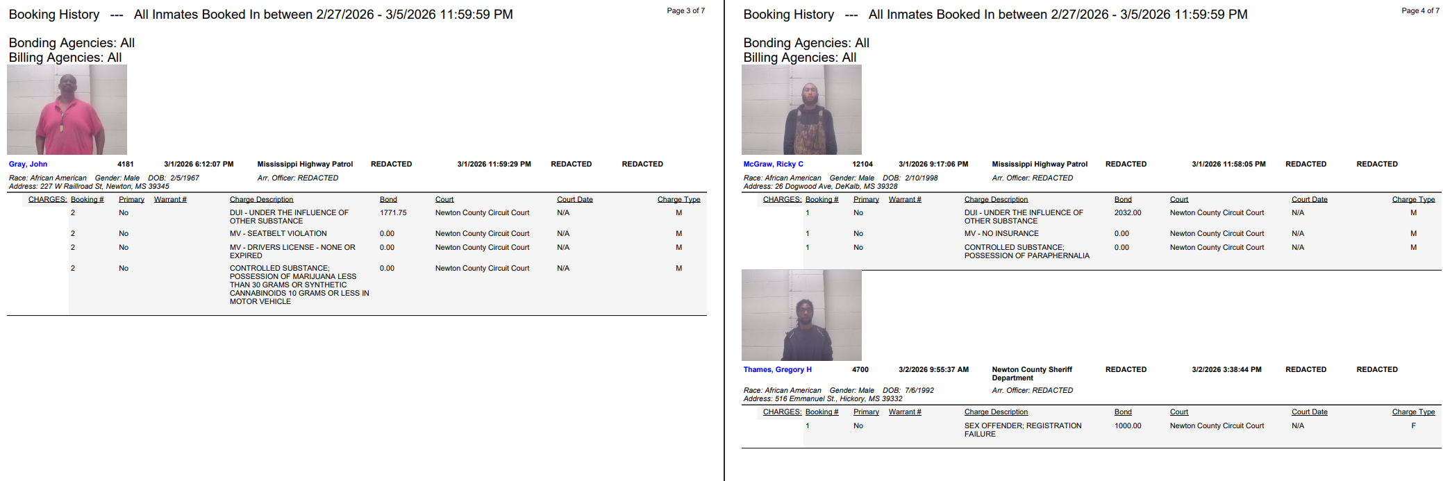 Newton County Arrest Report 3-6-26