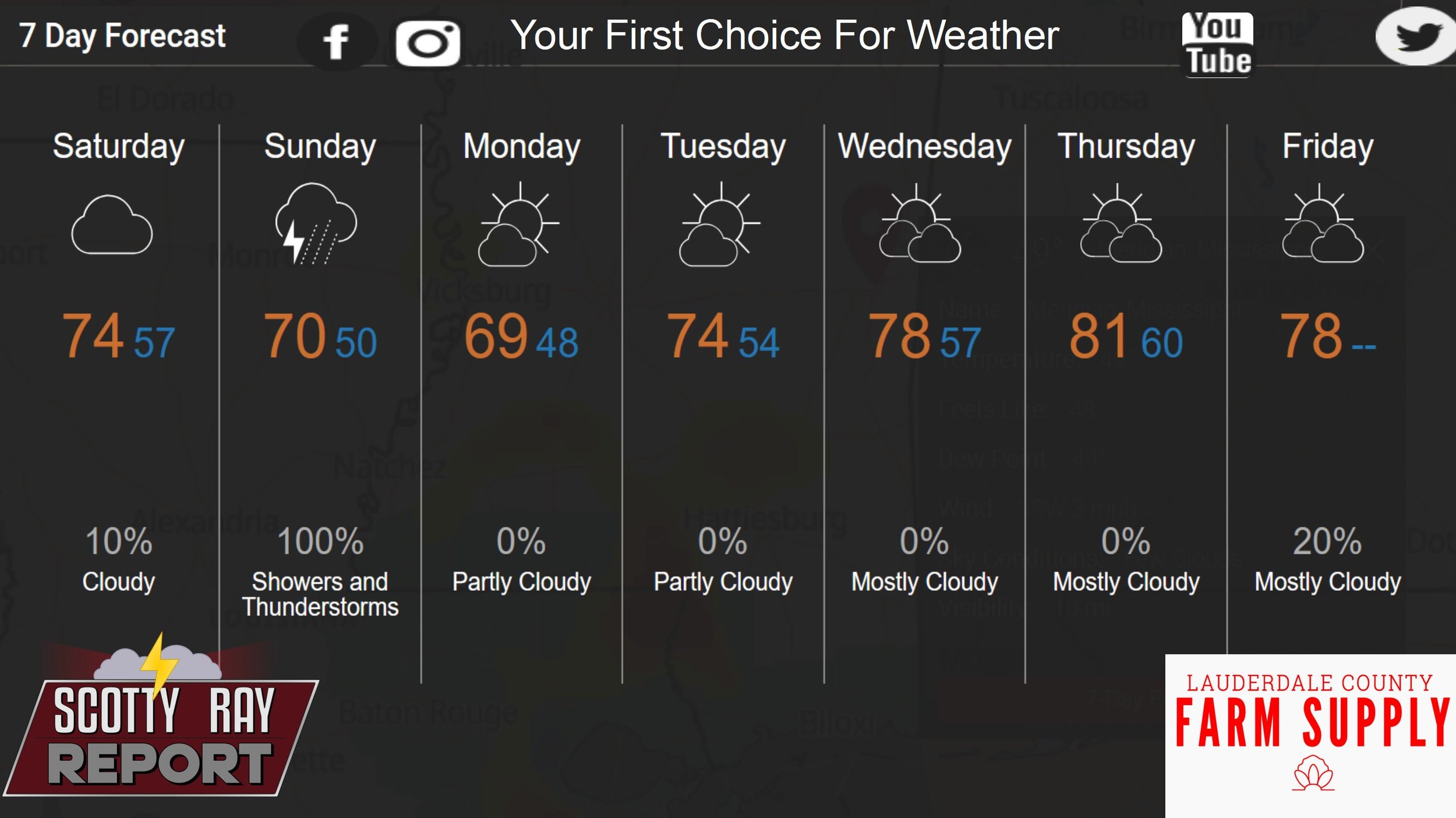 Showers and thunderstorms before 3pm, then a chance of showers. High near 70. South wind 10 to 15 mph becoming west northwest in the afternoon. Winds could gust as high as 30 mph. Chance of precipitation is 100%. New rainfall amounts between a quarter and half of an inch possible.