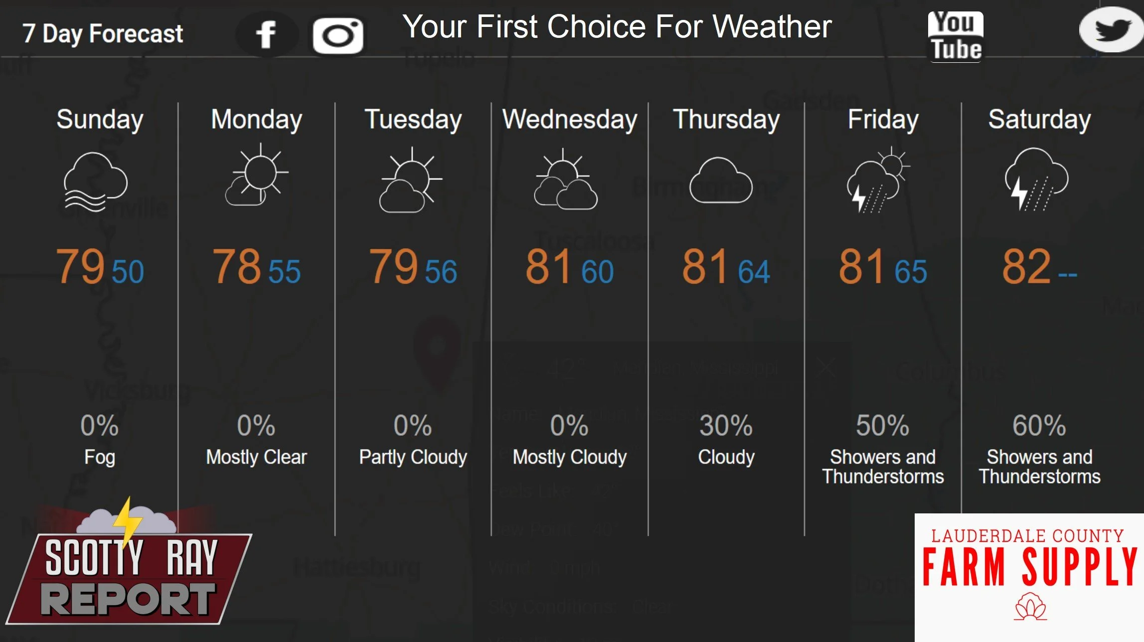 Showers and thunderstorms likely. Mostly cloudy, with a high near 82. Chance of precipitation is 60%.