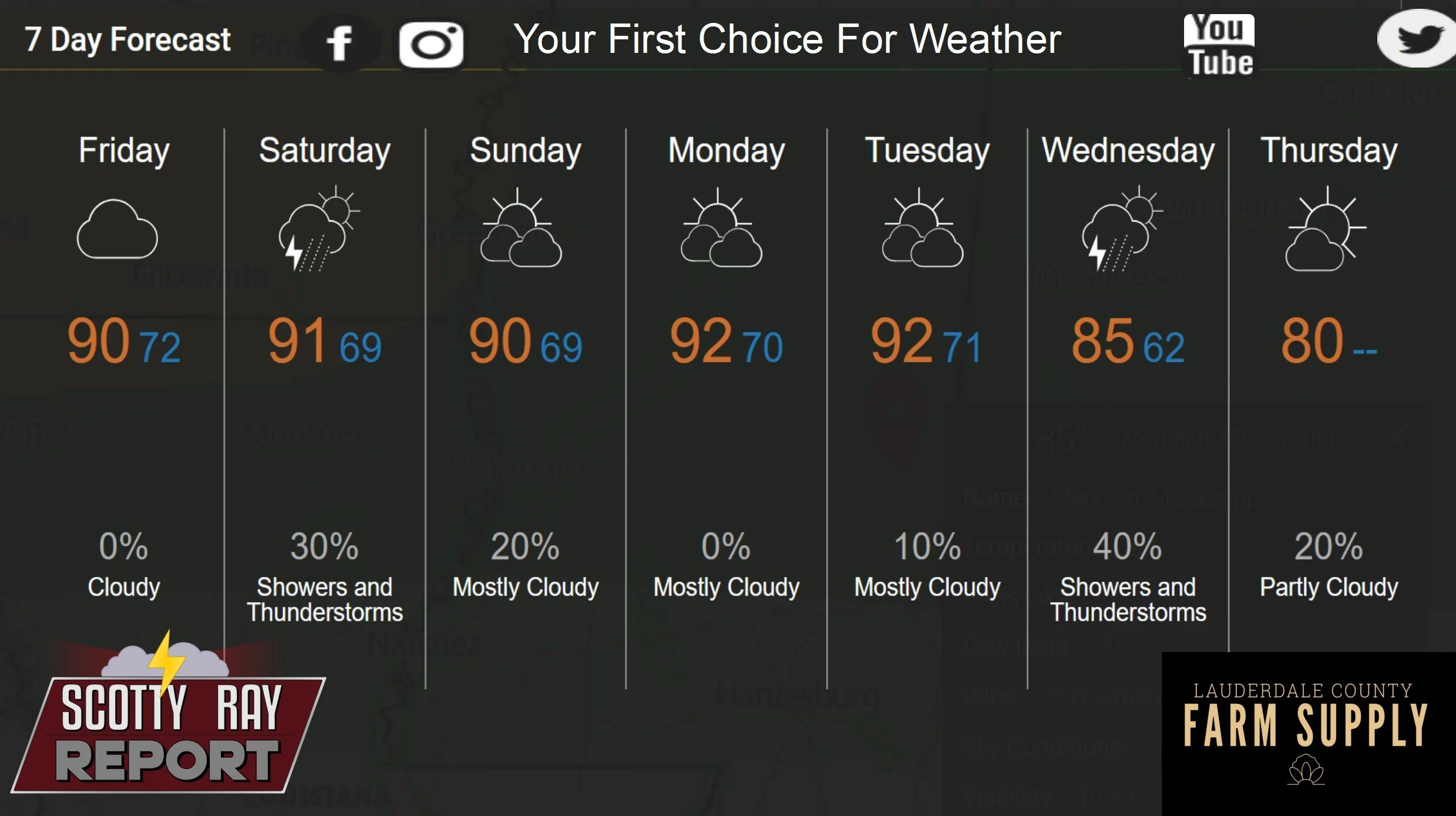 A chance of showers, with thunderstorms also possible after 1pm. Some of the storms could be severe. Cloudy, then gradually becoming mostly sunny, with a high near 91. Southwest wind around 10 mph. Chance of precipitation is 40%.