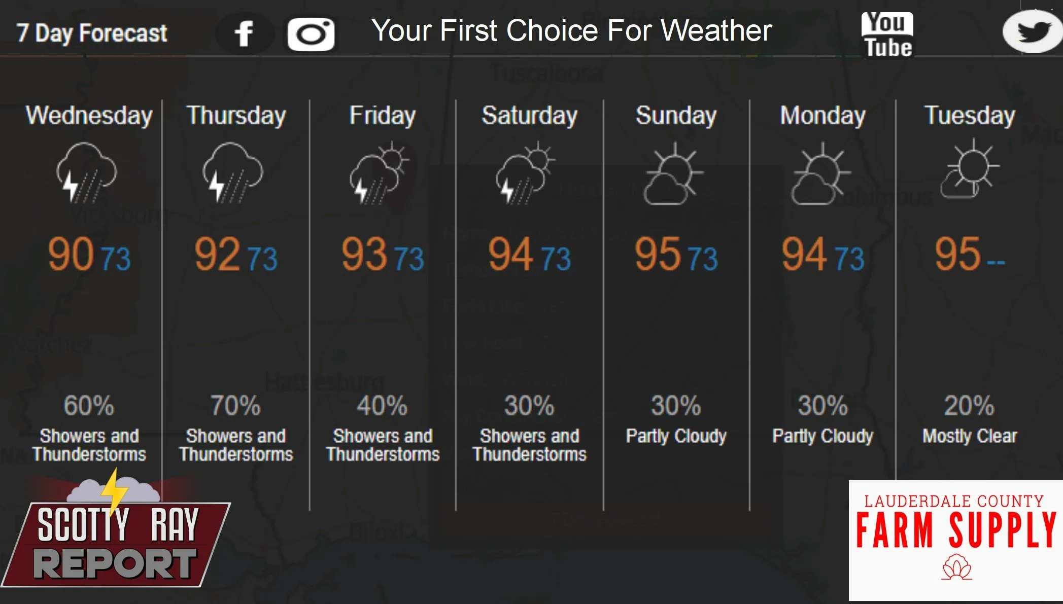 Showers and thunderstorms likely, mainly before 5pm. Partly sunny, with a high near 90. Heat index values as high as 99. Calm wind becoming north around 5 mph in the afternoon. Chance of precipitation is 70%. New rainfall amounts between a tenth and quarter of an inch, except higher amounts possible in thunderstorms.