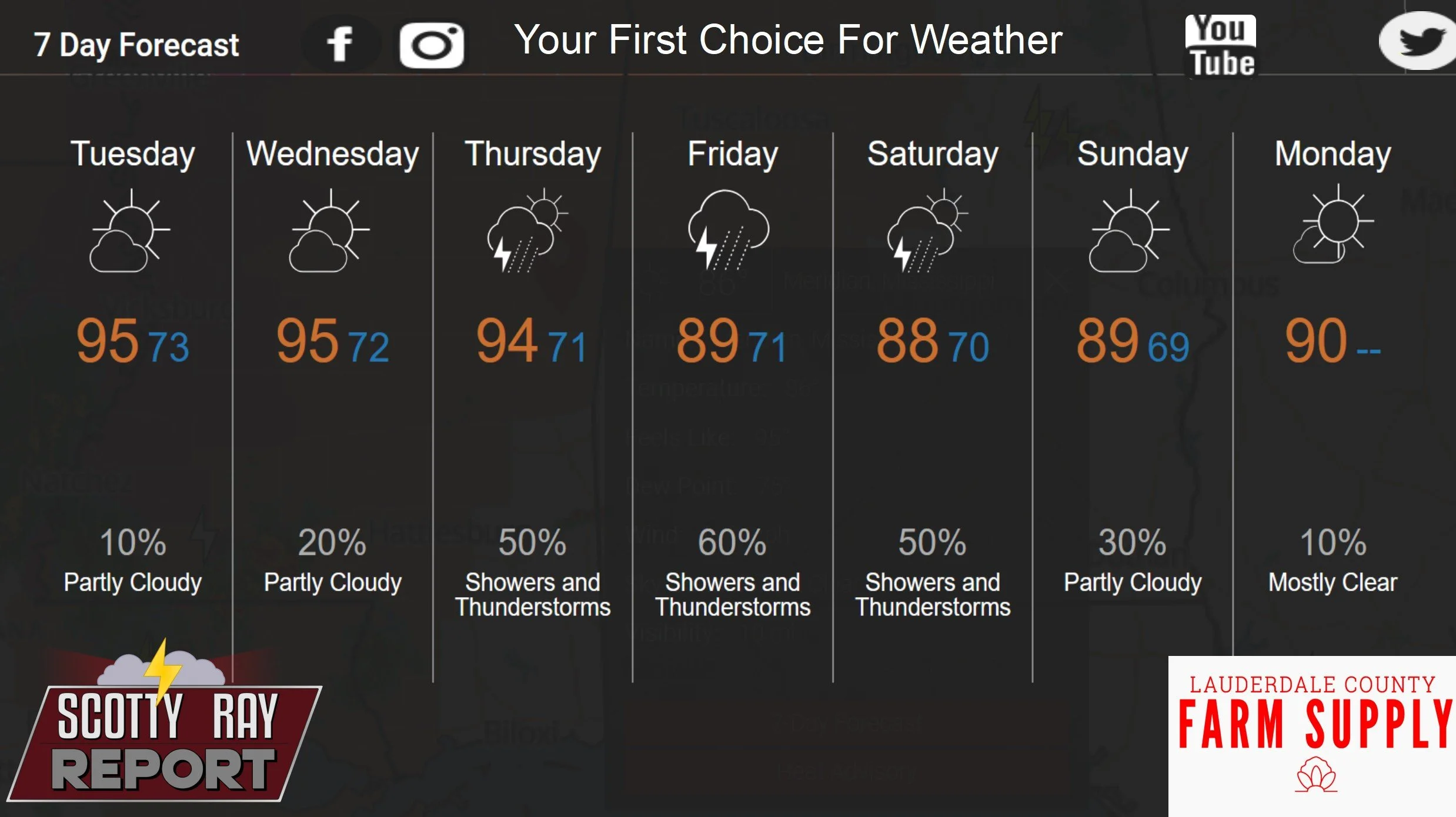 A 30 percent chance of showers and thunderstorms. Mostly sunny, with a high near 92.